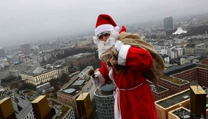بالفيديو- سانتا يتدلّى في الهواء